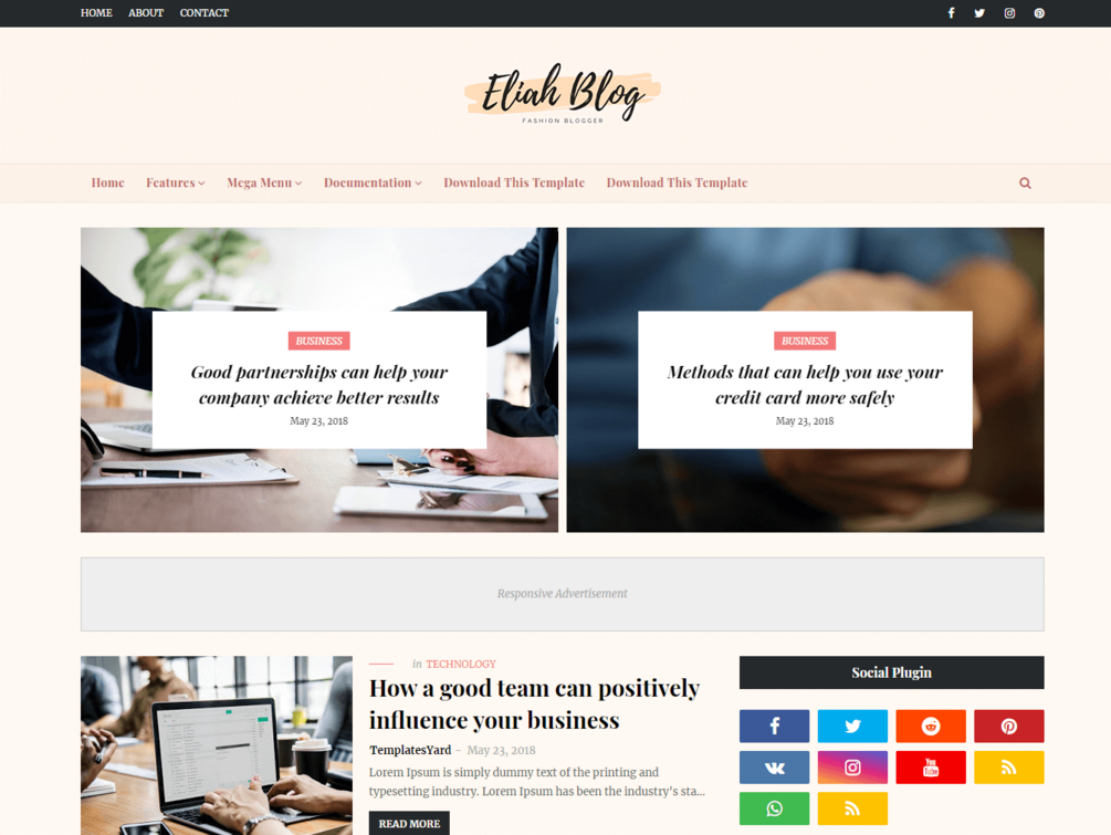Eliah Blogger Template is a beauty magazine blog. Either you want to create a blog for fashion, food, travel, beauty, or makeup this theme is going to serve you best. Each feature of this theme is designed beautifully with full excellence and magnificence. It works perfectly on desktops and also on small devices because of its mobile-focused design. You will find a variety of customization options in this template. Free and premium options are available. The high-quality layout and attractive design of this beautiful theme make it preferred by many users. New generation functionalities are present in the theme. It also supports google’s updated rich results.