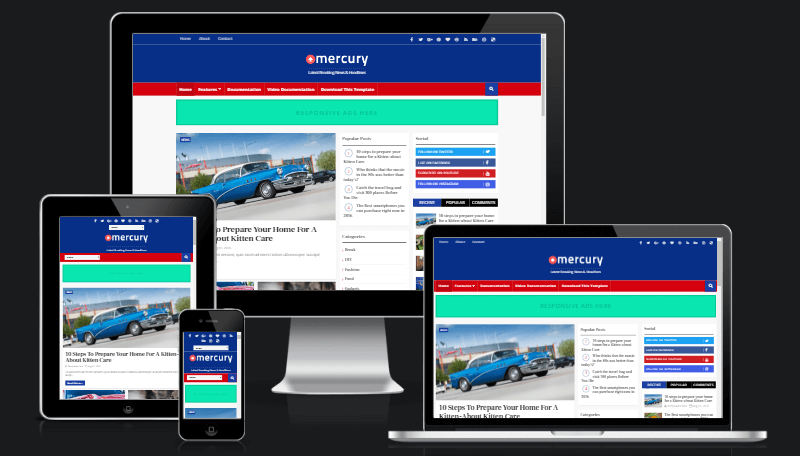 Mercury is a Blog / Magazine / Newspaper Blogger Template which gives you the tools you need to write and edit articles with ease. We carefully created the theme with multiple Blog/ Magazine / Newspaper niches and professions in mind – personal, professional, bloggers, editorial and more. With a focus on reducing bounce rates, while increasing ad exposure, this theme will keep your visitors scrolling with more content all while maximizing your ad revenue! If you are looking for news portal style blogger template then this is best option for you.